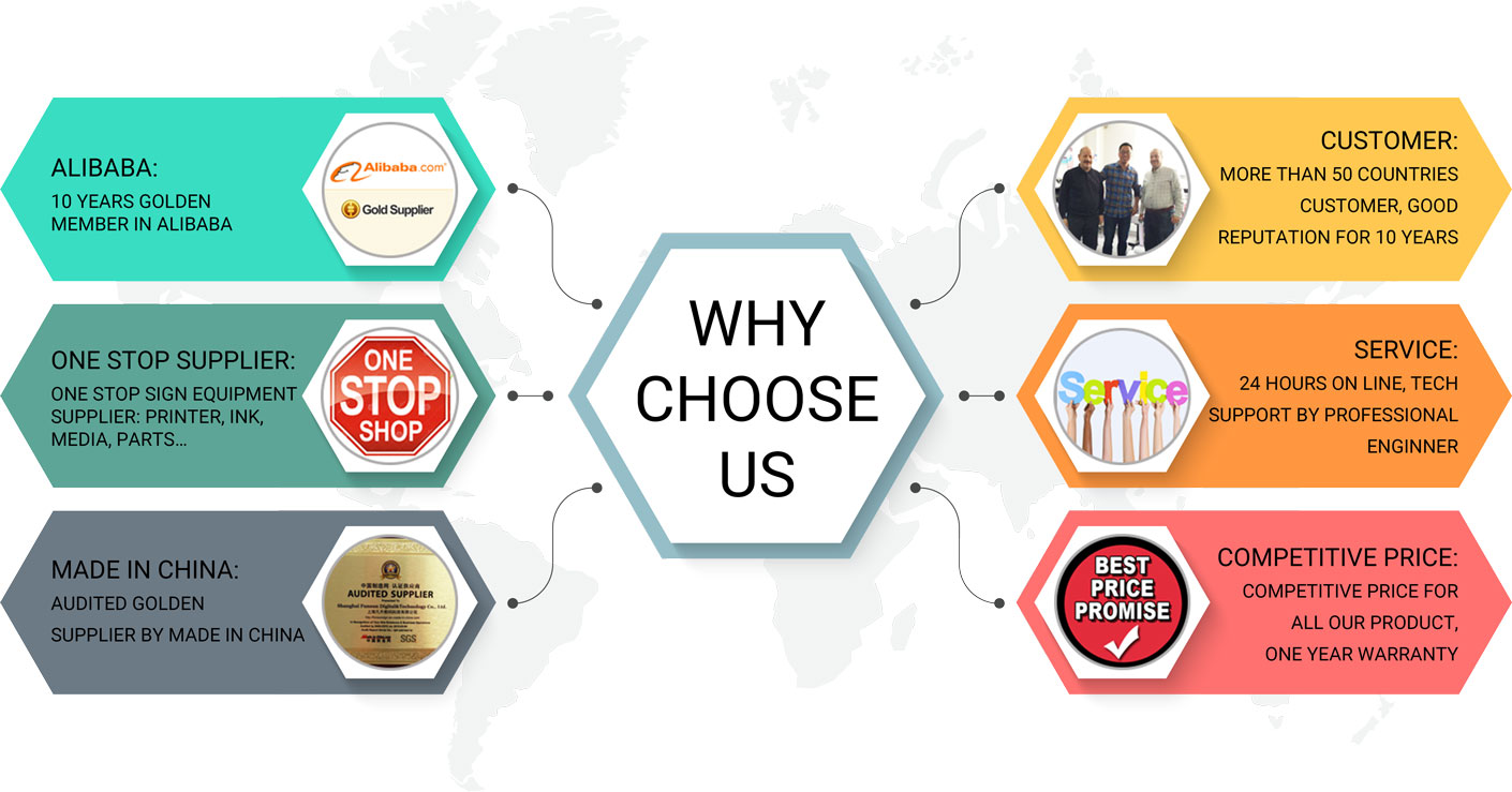 15 years of experience in multifunctional printer manufacturing, Funsun factory is a Large-scale modern printing equipment production base, covering 5,000+ square meters and has more than 1,000 employees in China. Till the 2023, The annual production capacity have reached 10 ,000+ units. Complete and rigorous production inspection process, various international certificates, including CE,BV,SGS,ISO90001, promising the quality and service life of the machine , which makes us the first partner of many international brands as well. We are also the printing equipment upgrading leader, firstly developed the integration of film printing and powder baking in DTF printer market and the automatic ink circulation in DTG Printer market , Besides, our UV (DTF) Printer , Large Format Printer and Laser Marking Machine enjoy the popular in over 50+ countries as well.